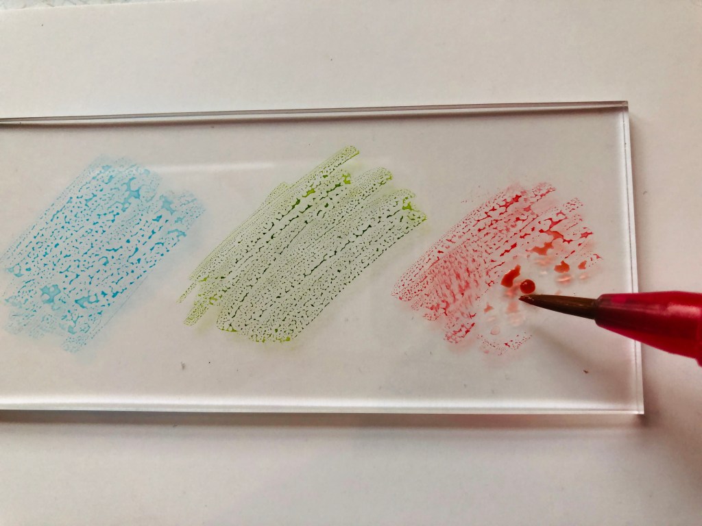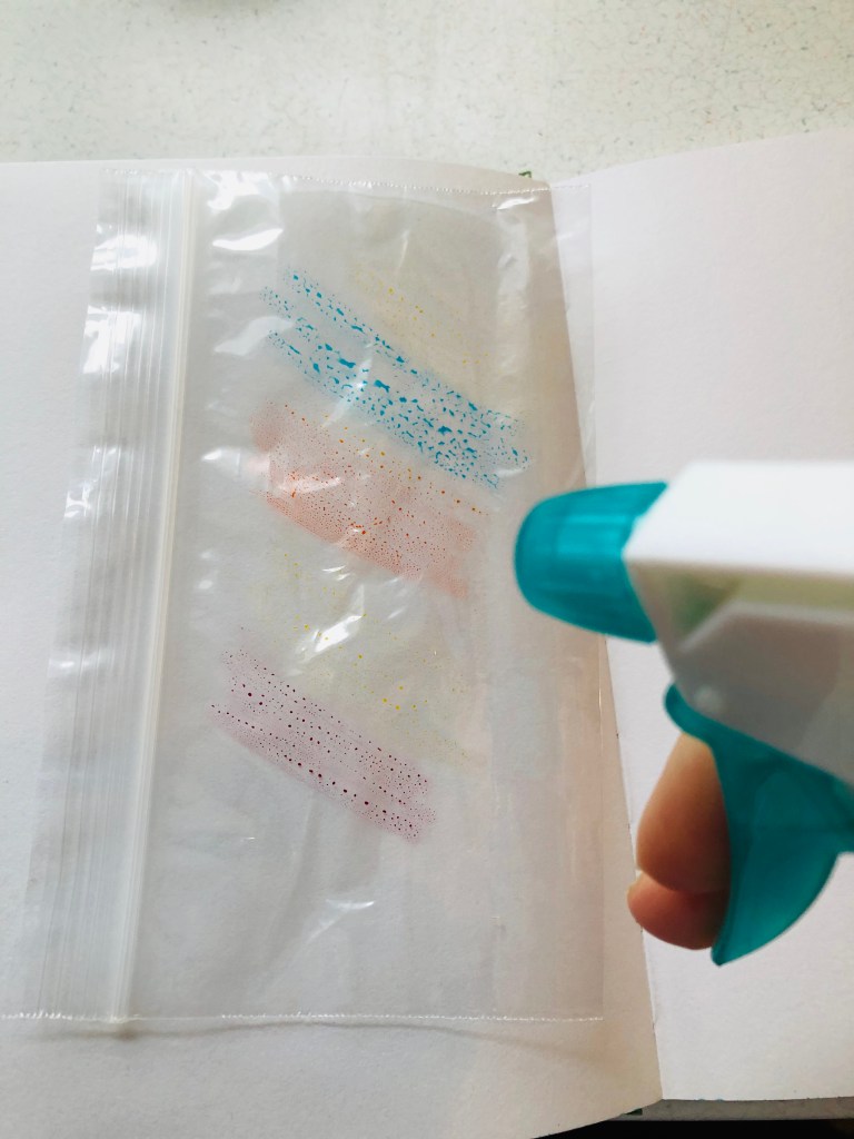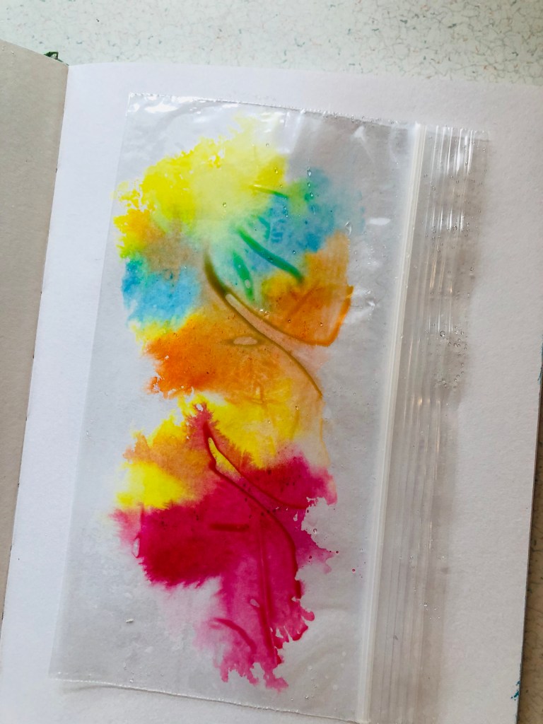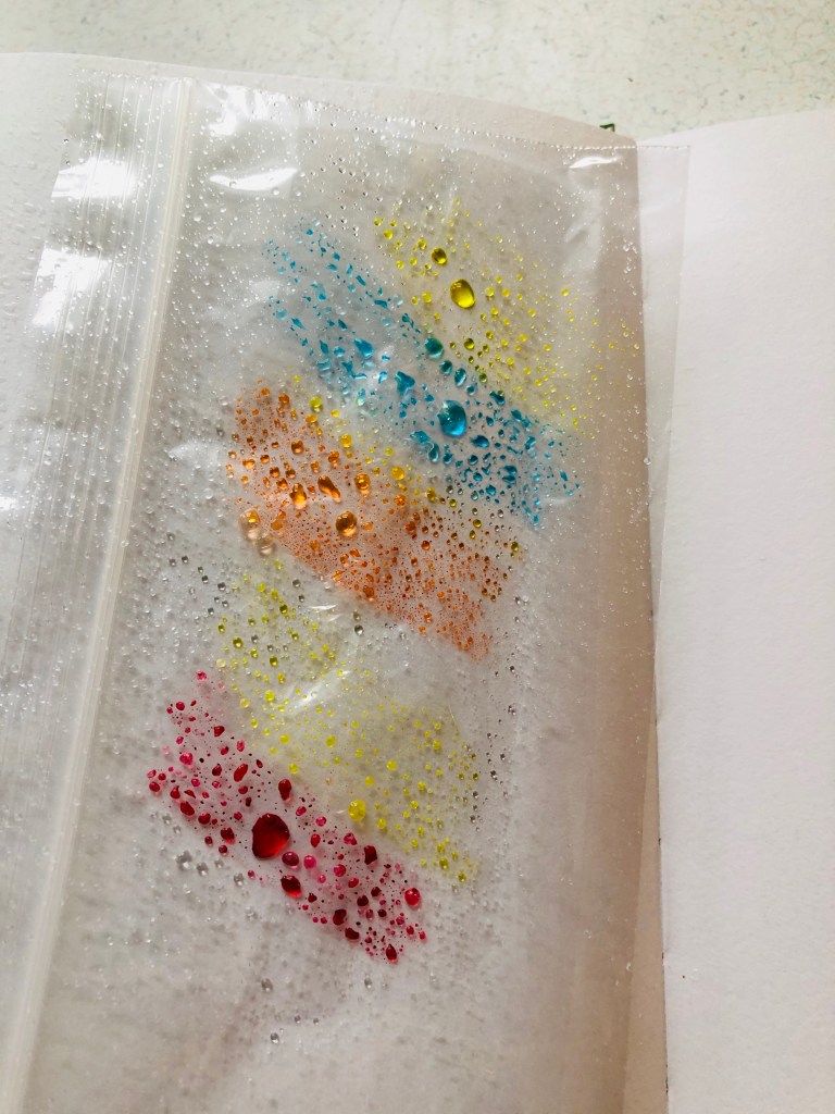 • Déposez de la couleur sur le morceau de plastique (ou le sac à sandwich).