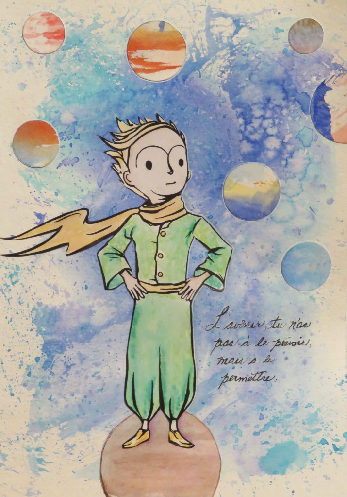 Il arrive que le résultat soit plutôt… moche. Du moins, loin de mes attentes. Je conserve tout de même le papier pour m’en servir dans mes collages. Ici, une feuille moche s’est métamorphosée en très jolie planètes.
