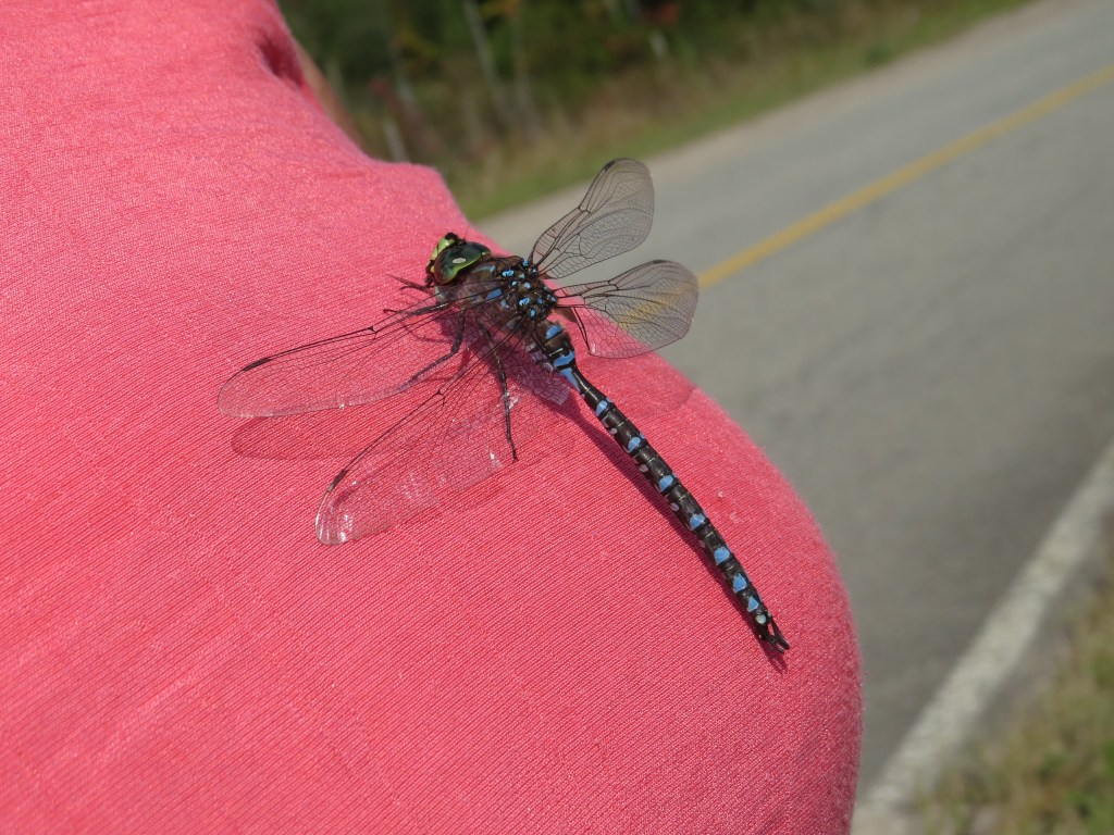 Quelques minutes plus tard, une libellule a pris ma poitrine pour une piste d’atterrissage.